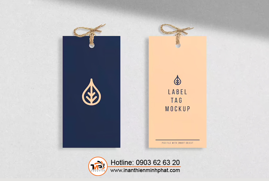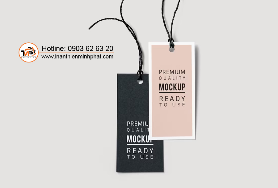 Đến với In Ấn Thiên Minh Phát, tag sản phẩm sẽ có vùng in trong kích thước 8.6 x 5.1 cm. Chỉ cần trong vùng in này, chúng tôi sẵn sàng in ấn mác sản phẩm theo bất kỳ hình dáng nào theo yêu cầu.